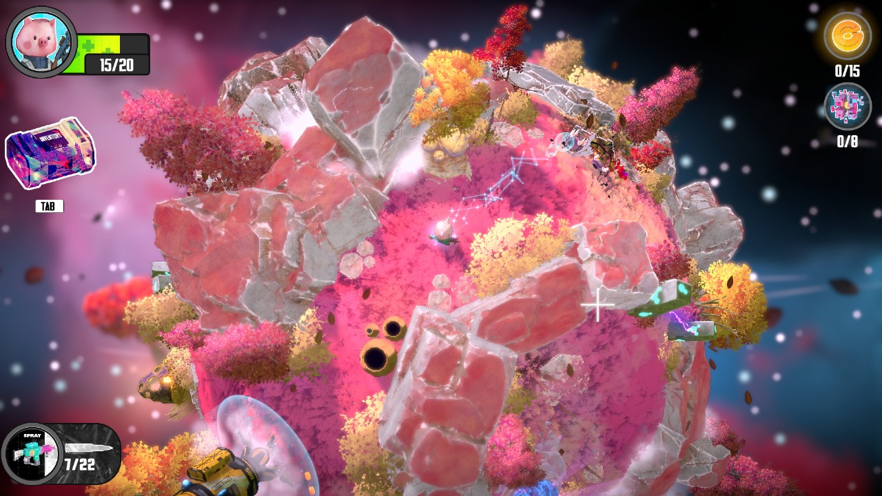 Burst bugs in a tiny planet, with your weapons.